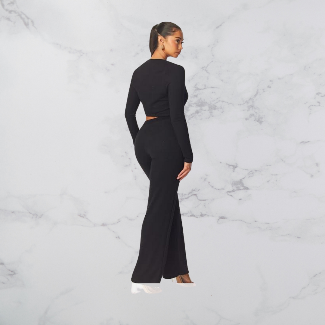The leather buckle set this off! Enjoy this slimming, sexy, yet modest look. You can always add a black camisole for more coverage!